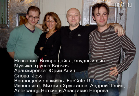 Дело оставалось за малым - сделать минус. После нескольких месяцев метаний, мы обратились к композитору Юрию Анину, который сделал аранжировку этой песни. Мы арендовали студию, пригласили Михаила Хрусталева, Андрея Левина, Александра Ноткина и питерскую певицу Анастасию Егорову. И понеслось...